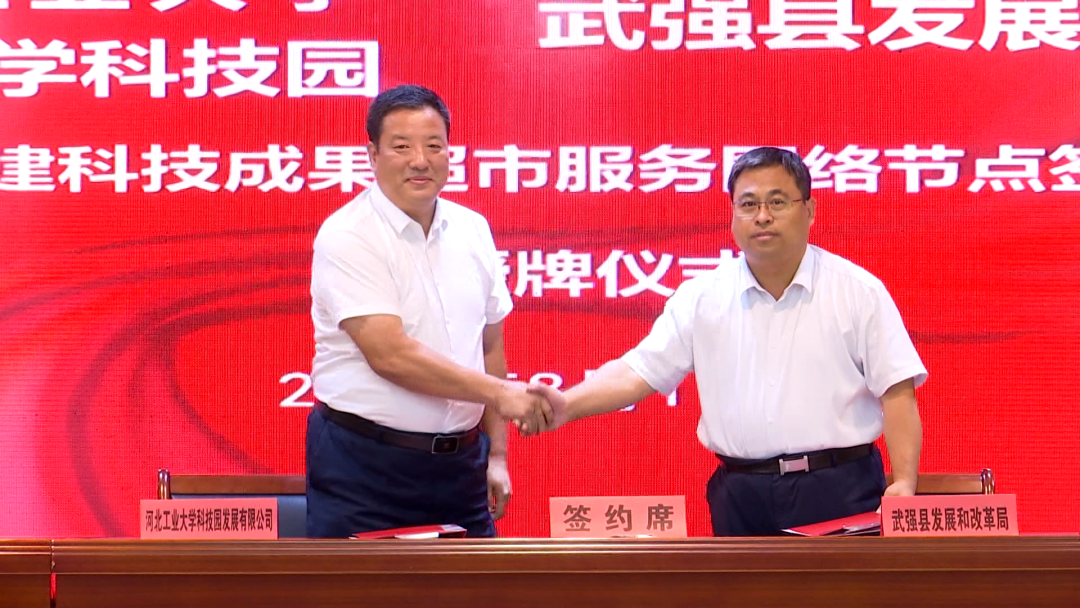 天津河北工业大学科技园发展有限公司与武强县发展和改革局就河北工业大学科技成果超市服务网络节点进行了签约授牌 摄影:刘昂