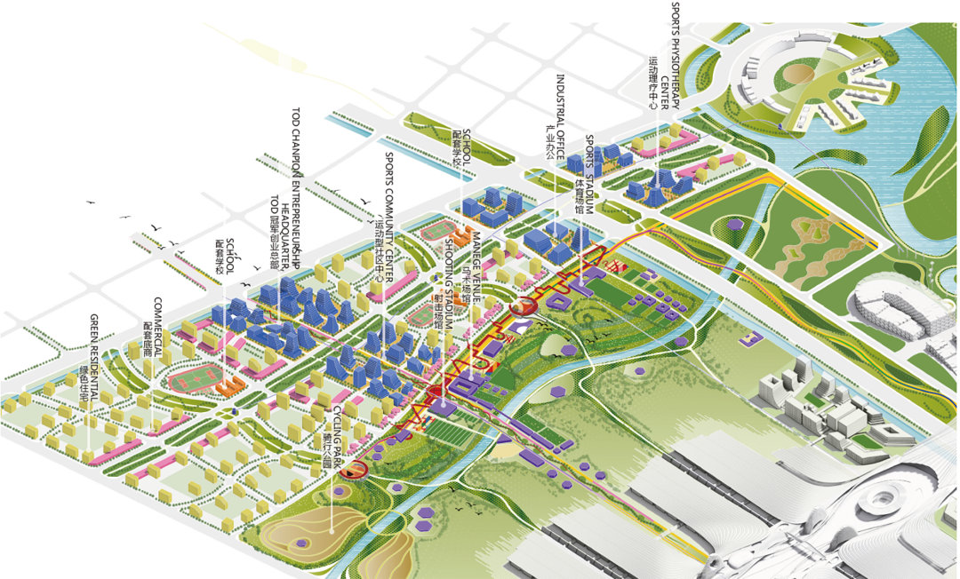 以健康为主题进行整体规划,覆盖居住、运动相关产业、专业运动展品展销、运动医疗中心、冠军星光大道等多板块,打造集产业、零售、餐饮、娱乐、医疗、旅游、康养、居住于一体的全功能全业态的特大型综合社区。