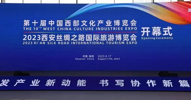 8月17日上午,第十届中国西部文化产业博览会与2023西安丝绸之路国际旅游博览会在西安国际会展中心开幕。