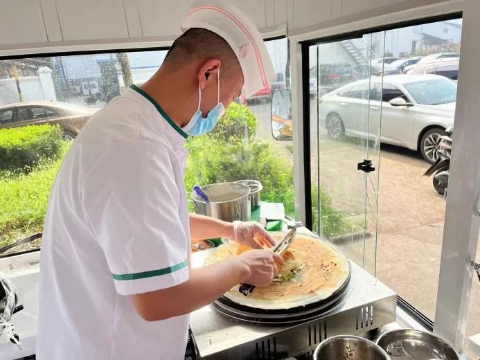 在该公司赵庄项目部,由于矿区面积大,洗煤厂办公楼距离食堂较远,加之夏季中午气温高,许多职工一到饭点就“发愁”。为了解决这一问题,该项目部通过调研,决定以“流动餐车”的形式走向职工身边,解决就餐远的问题。近日,筹备了许久的流动餐车正式投入使用,停靠在洗煤厂的办公楼边,等待着职工前来取餐。流动餐车每天早上7点到9点售卖早餐,有各类粥品和煎饼果子、茶叶蛋、包子、玉米等;中午1点到下午1点售卖午饭,有大米套餐、炒饼炒卤面和免费的汤品。半封闭的操作间、干净整齐的操作台,简单的早点制作、各类菜品的出售都可以在车内完成,既缩短了职工的用餐距离,又保证了饭菜的干净卫生。