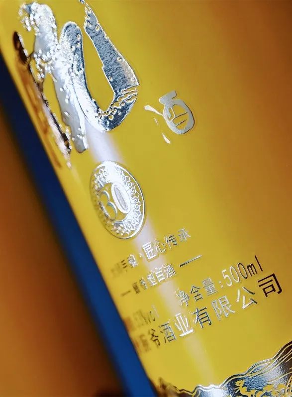 “腕酒30”是腕爷酒业今年推出的重磅新品,总体秉持着“大道至简”的设计风格,在同样拥有酱酒工艺文化过程的烫金卷轴设计下,暗金的文字里传达着“腕酒30”的品质、文化等元素。