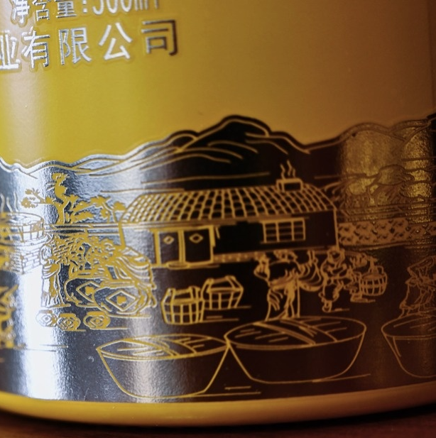 去掉了原瓶身环绕的云纹设计,哑光的质感体现出简约干净的感觉,同时底座新增了酱酒工艺文化过程的展示,犹如一幅国画卷轴,将茅台镇世世代代酿酒人的勤劳与智慧浓缩在画里。