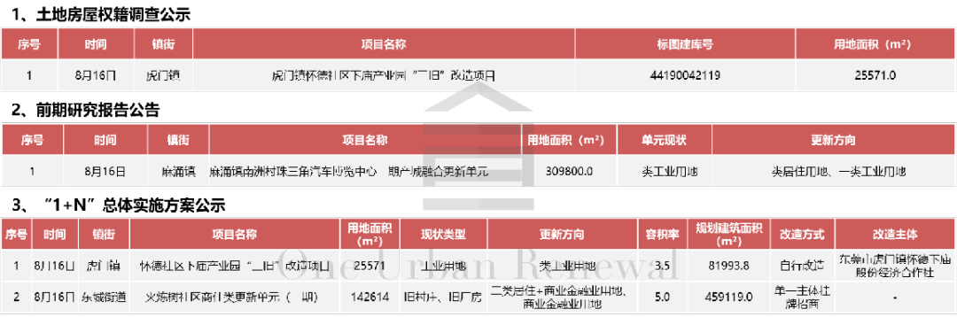 ●本周,东莞市共发布4个项目动态:土地房屋权籍调查公示1项,用地面积2.6公顷;前期研究报告公告1项,用地面积31公顷;“1+N”总体实施方案公示2项,用地面积16.8公顷。