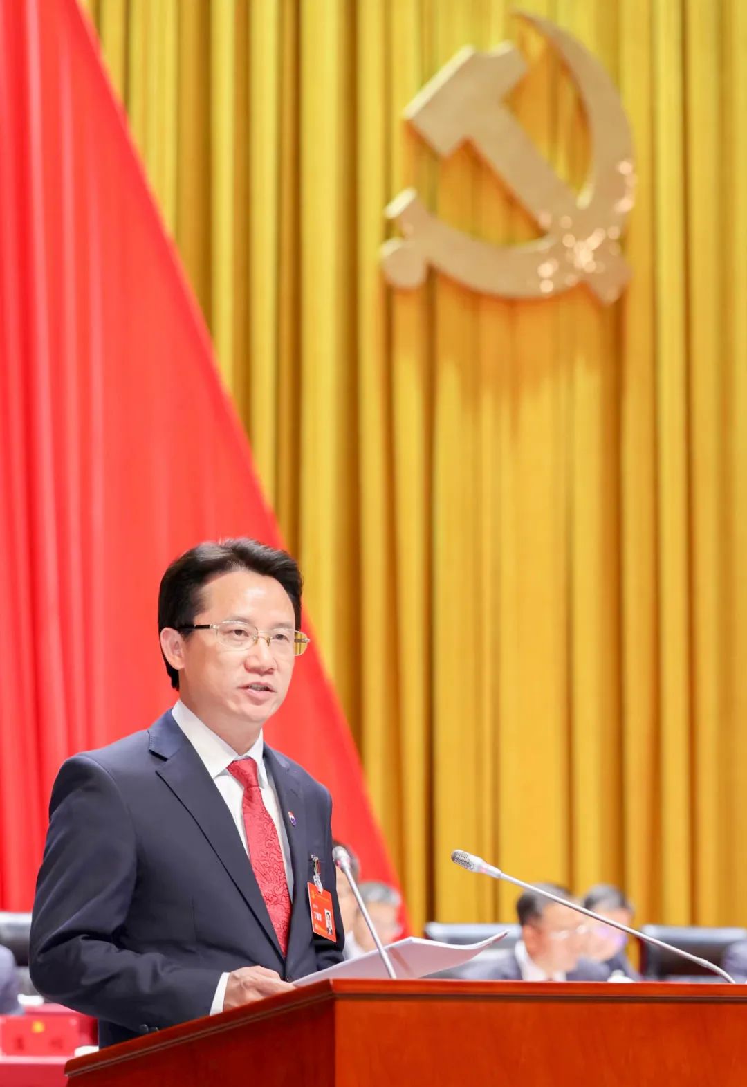 大会开幕会上,丁雄军、李静仁、卓玛才让、滕建勇、高山、段建桦、万波、刘刚、王莉;省国资委党委委员、副主任安丰明,集团老领导陈敏、季克良、李保芳、赵书跃等在主席台就座。
