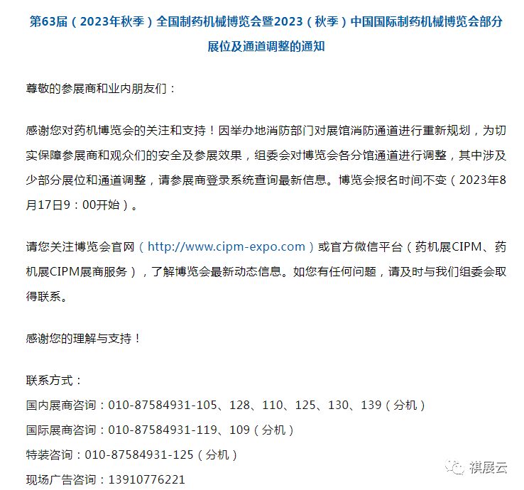 第63届药机博览会部分展位及通道调整的通知