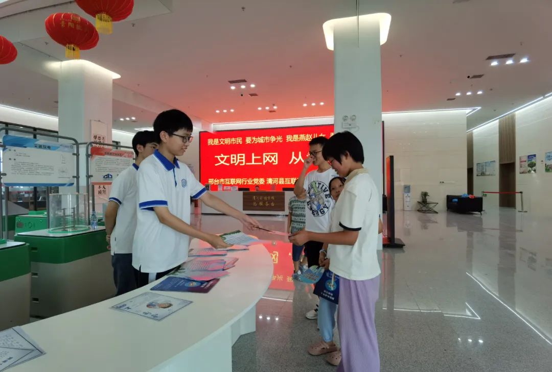 为深入开展“双争”活动,进一步传播网络文明,提升公众网络文明意识,引导广大群众自觉践行网络文明,近日,邢台市互联网行业党委、清河县互联网行业党委在网络文明素养实践教育基地-清河县图书馆,开展“文明上网 从我做起”公益宣传活动。