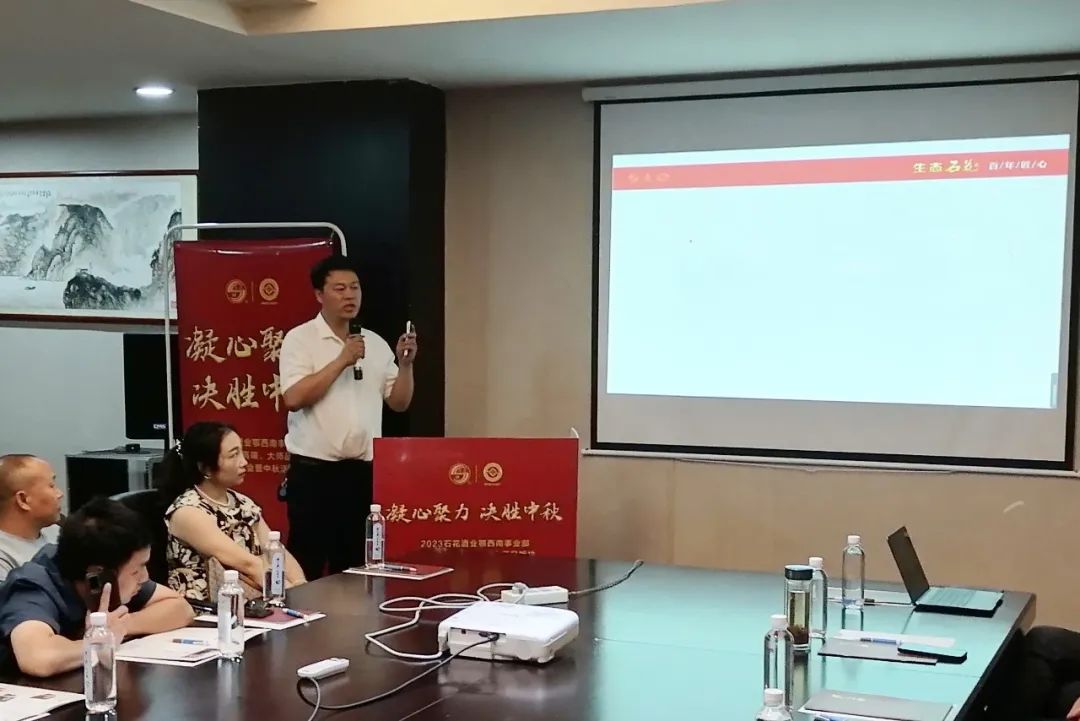 宜城区域霸王醉市场精英管冬华在会上为大家讲解了宜城区域第一季度总结、中秋活动规划及天赐精英荟规划等。宜城区域高端年份主管王丽讲解了宜城区域2023年高端板块石花20酒、石花大师品酒等工作规划。市场监察部经理聂雄飞在会上讲解了石花酒业市场秩序管理办法。为规范石花酒市场经营秩序,保护厂商共同利益,培育市场健康稳定持续发展,公司将加大市场监管力度,持续净化竞争环境,提高合作伙伴的经营信心。