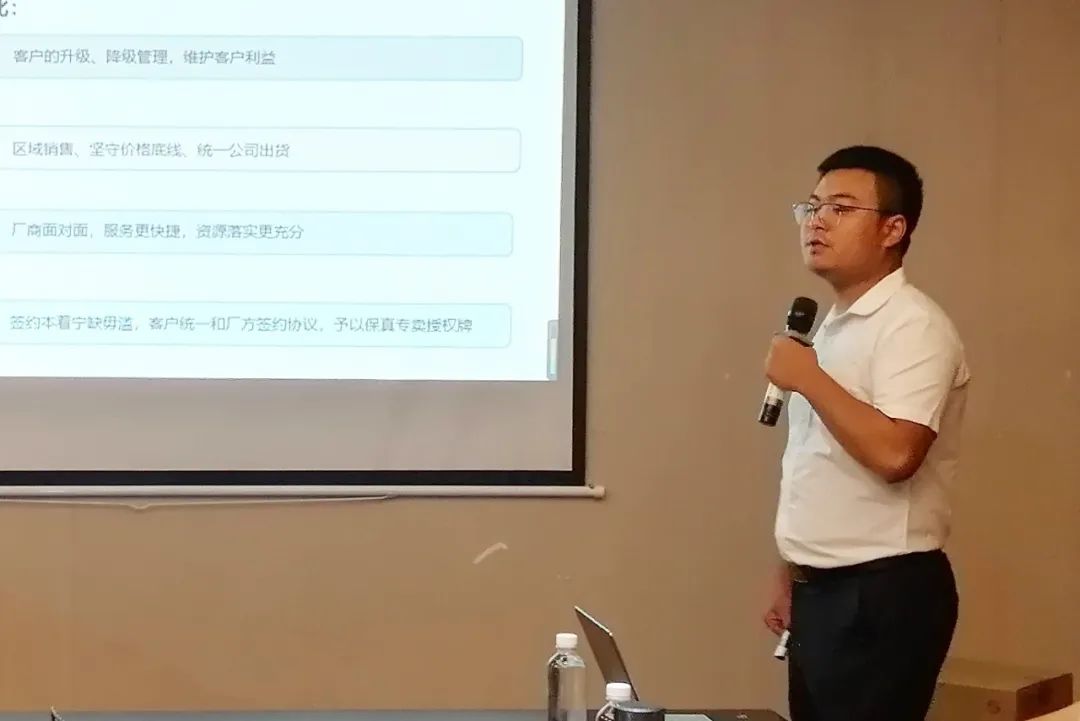 宜昌霸王醉主管余少聪在会上为大家讲解了宜昌区域第一季度总结、中秋活动规划及天赐精英荟规划等。宜昌天字号见习经理胡昊讲解了宜昌区域2023年高端板块石花20酒、石花大师品酒等工作规划。市场监察部主管杨先东在会上讲解了石花酒业市场秩序管理办法。为规范石花酒市场经营秩序,保护厂商共同利益,培育市场健康稳定持续发展,公司将加大市场监管力度,持续净化竞争环境,提高合作伙伴的经营信心。