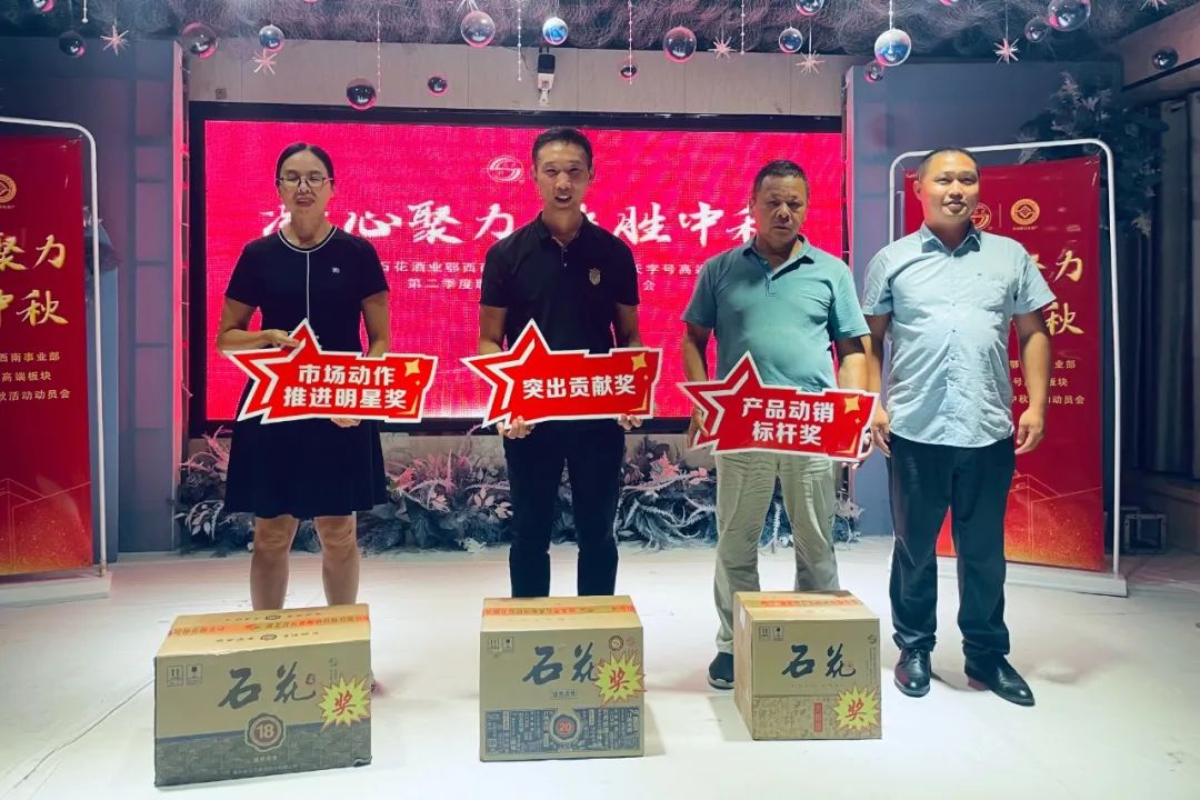 会上对表现优秀的合作伙伴给予了表彰奖励,魏红波、王银高等领导为合作伙伴们颁发了奖品。魏红波做总结讲话。他表示,在中秋活动来临之际,公司将会投入更多的资源促进市场动销,更好的完善渠道布局构建,将规划市场秩序进行常态化管理,规范性的稳步拓展市场,提升石花酒在市场的影响力。希望合作伙伴们在公司正确方针的指导下,积极开展各项市场动作建设,坚定品牌自信心,坚定实现厂商共赢的决心。