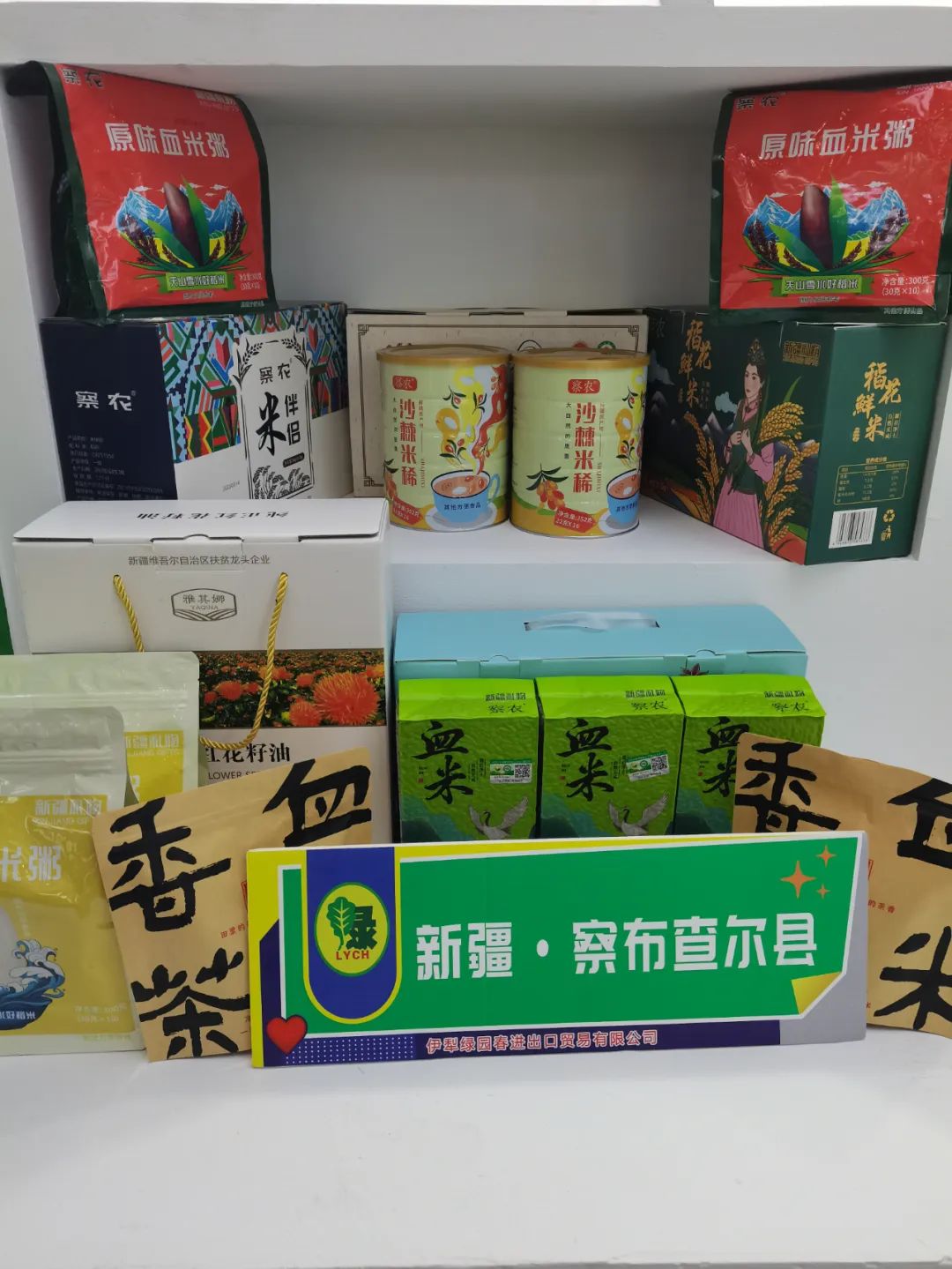 本次博览会中,察布查尔县供销社社属企业伊犁绿园春公司携带察布查尔县优质农特产品有大米系列、红花油系列、牛肉干系列 、薰衣草等三十余种系列产品,分别在自治区供销社馆、伊犁州展馆进行展示展销。