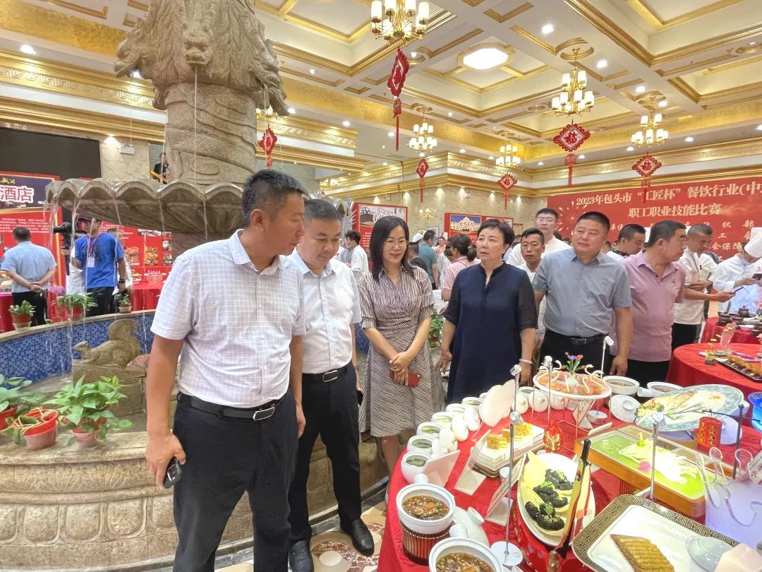 为深入贯彻落实党的二十大精神和习近平总书记对技能人才工作的重要指示精神,大力弘扬劳模精神、劳动精神和工匠精神。8月18日,由包头市委组织部、市总工会、市人力资源和社会保障局主办,东河区总工会承办,区餐饮业工会联合会协办的包头市“工匠杯”餐饮行业(中式冷菜)职工职业技能比赛正式拉开帷幕。包头市财贸轻纺农牧林水工会主席王瑾,东河区人大常委会副主任、党组成员,区总工会党组书记、主席杨锐,区总工会党组成员、副主席邢艳红,区市场监督管理局党组书记、局长周静涛,区市场监督管理局党组成员、副局长张屹冬等相关领导出席活动。来自全市餐饮行业的18家企业的60余名选手参赛。