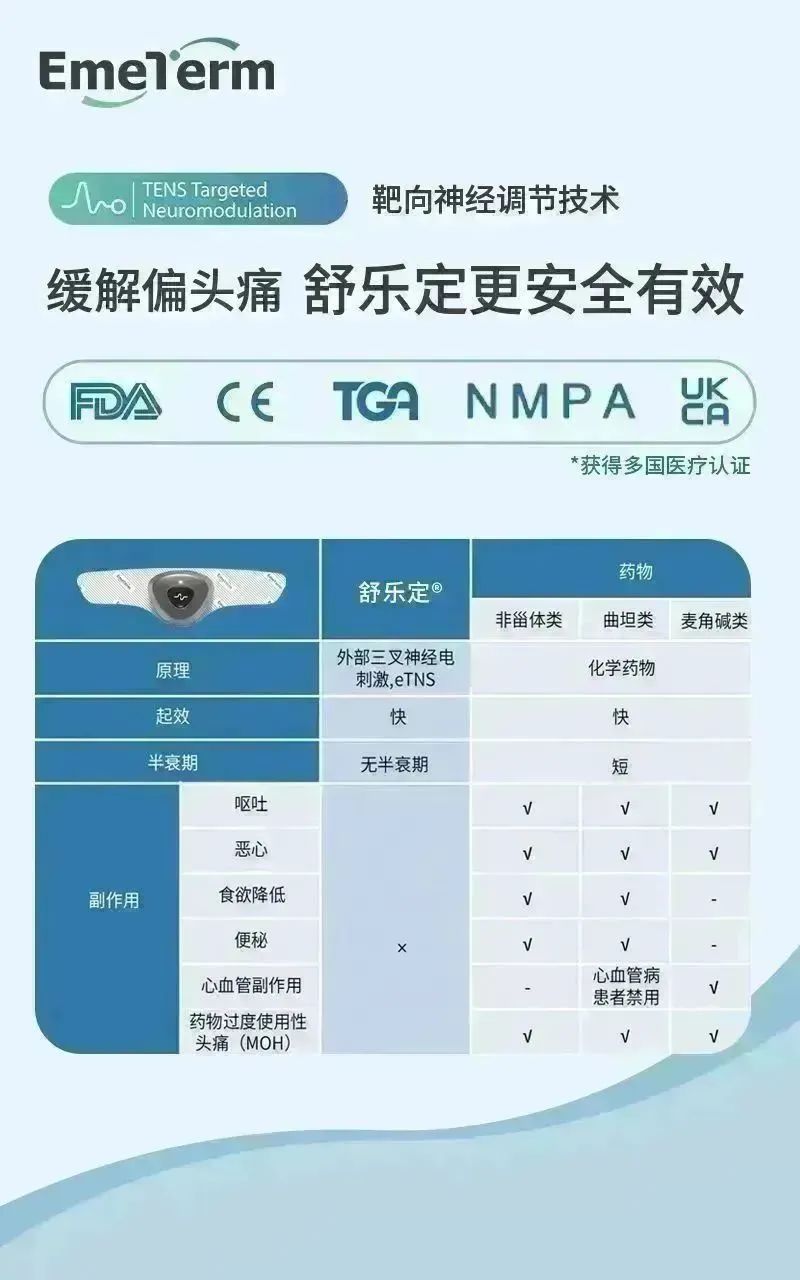 越凡医疗旗下的舒乐定® (EmeTerm)品牌兼具医疗和消费品双重属性,产品包括:防吐手环、电子咖啡手环、头痛贴、减脂手环等。舒乐定®(EmeTerm)产品五次获得德国IF以及红点设计奖项。