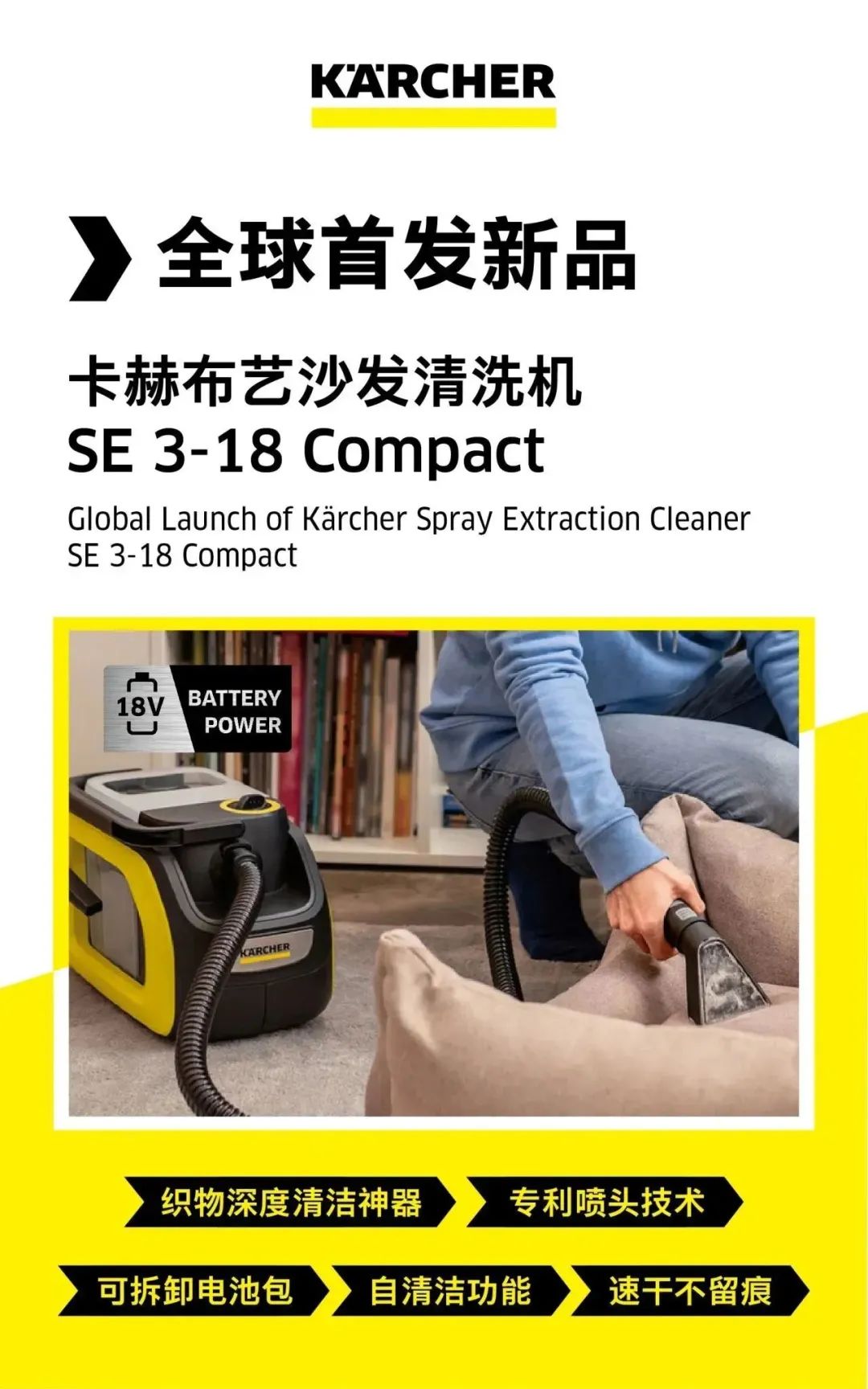 卡赫无线多功能清洗机OC 3 Foldable Plus、卡赫布艺沙发清洗机SE 3-18 Compact、卡赫Mysoda气泡水机将在第六届进博会上首次亮相。