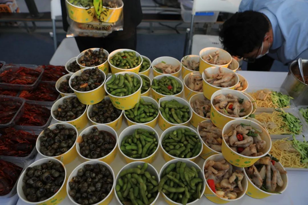 品牌啤酒展销区、龙虾、冷菜等