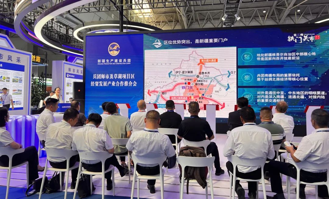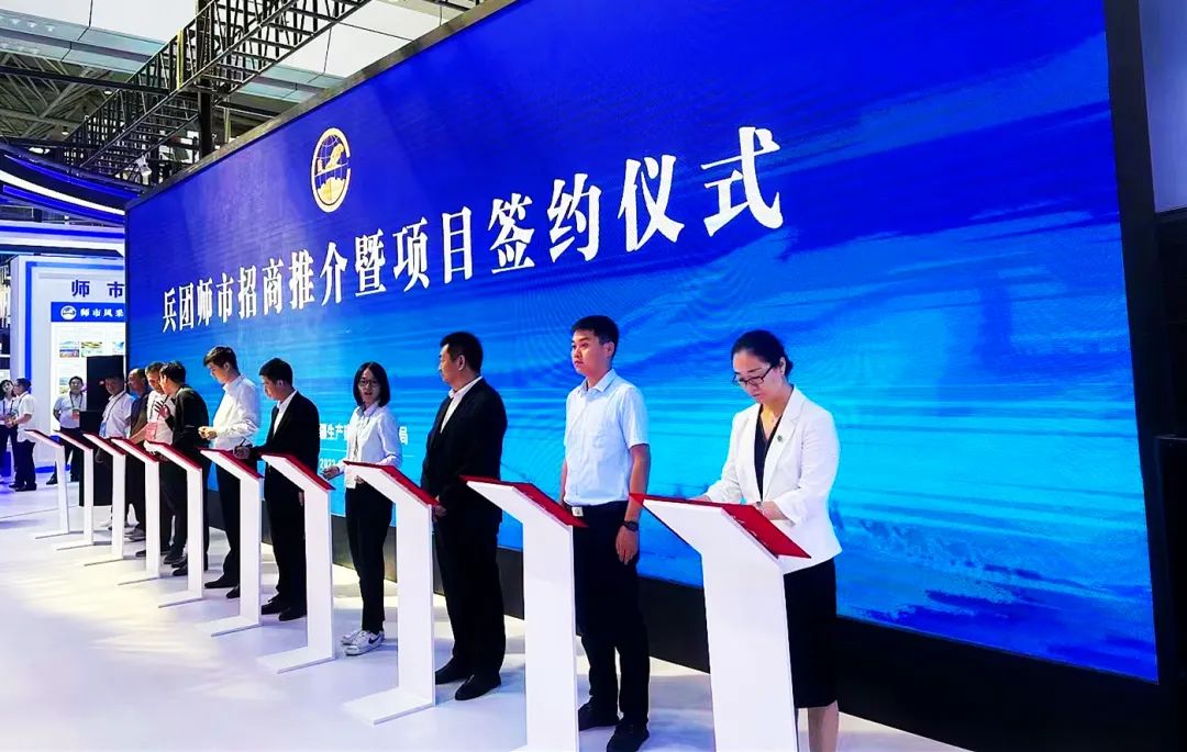 兵团招商推介暨项目签约仪式上,师市商务局负责同志重点围绕师市优越的交通区位、极佳的资源禀赋、鲜明的产业特色、雄厚的教育资源、全面的政策扶持、良好的营商环境等方面作了介绍,并现场发放师市招商服务折页和重点项目库手册,全方位展示了机遇叠加、厚积薄发、活力四射的二师铁门关市。