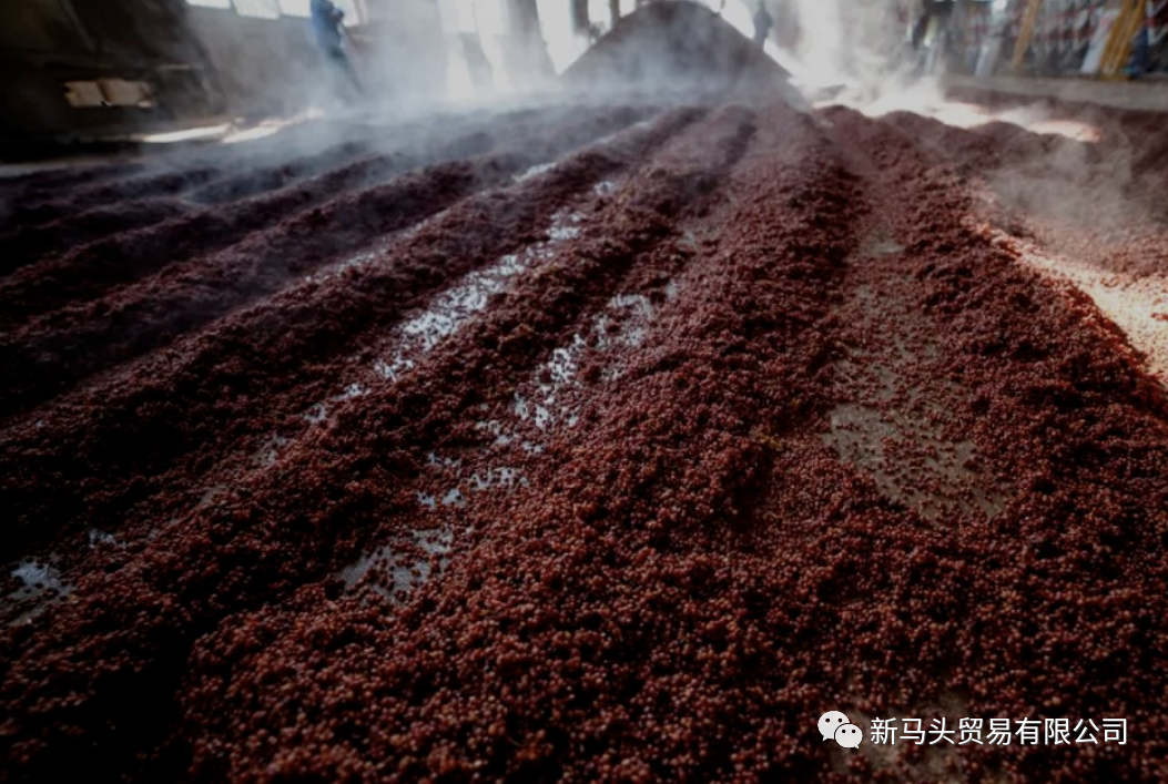 重阳时节,恰是高粱成熟丰收,此时的赤水河水由黄转清,变得清澈甘甜,富含矿物质,正适用于酿酒,准备完毕,等待水火考验。第一轮次的投料蒸煮称之为下沙,用95°c以上的沸水与“沙”充分拌匀,一堆1500斤高粱浸润十几小时,一共要润沙三次,每泼一次热水,需快速翻拌三次。润粮结束后上甑蒸煮2小时左右。