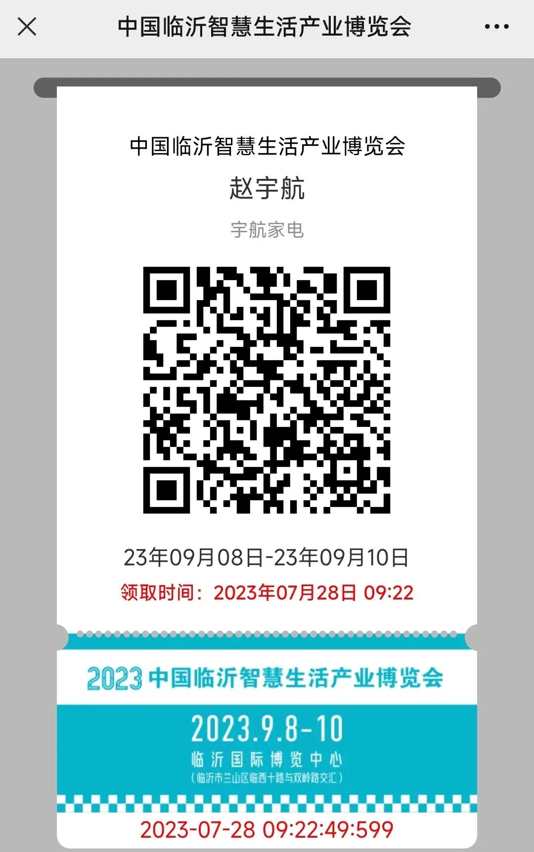 报名成功,保存二维码,现场可快速进场