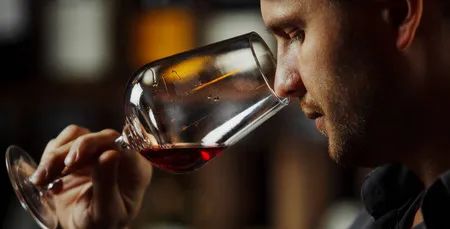 酒款中蕴含的各类香气不仅为品酒者带来感官享受,还可以用于评定葡萄酒的质量。闻香时应先摇晃酒杯让香气充分释放,然后将鼻子靠近酒杯边缘,嗅一嗅,感知香气的纯净度和浓郁度。有些酒款香气充盈,只轻轻一嗅,就能立即闻到明显的芳香,而有的酒款香气则十分微弱,甚至难以察觉,这些都有助于品酒者判断一款酒的品质。