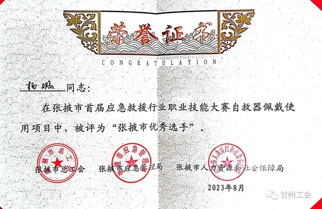 【喜报】热烈祝贺张掖市大弓农化有限公司在张掖市首届应急救援行业职业技能大赛中取得优异成绩!