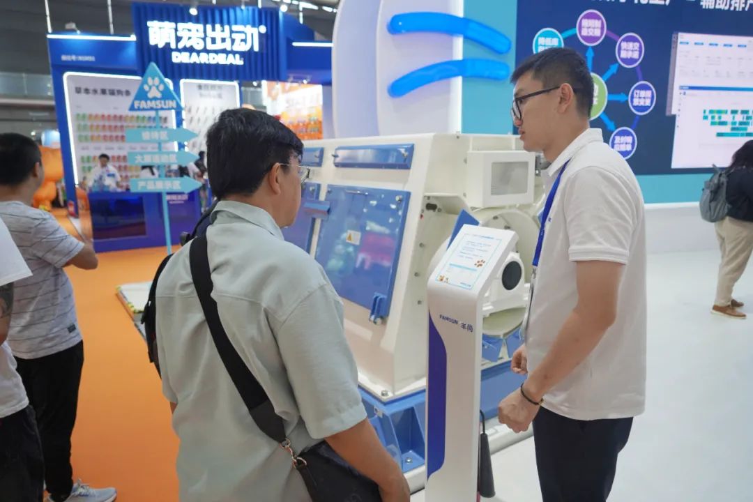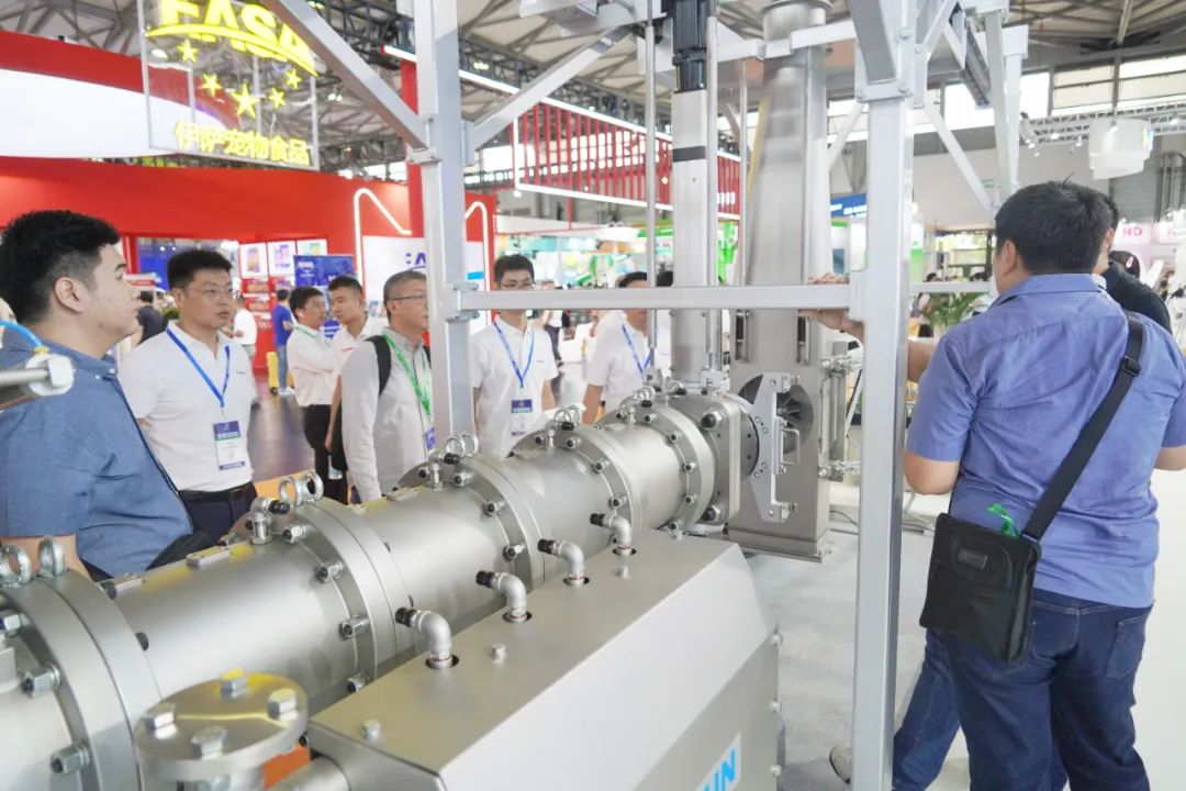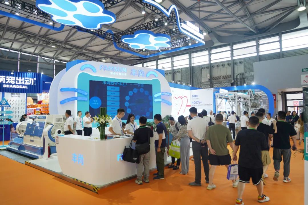 近年来,随着中国经济社会的发展和物质水平的提高,宠物已经成为中国人生活的一部分,中国宠物食品产业规模由此快速增长,已经步入了高质量发展的快车道。高质量的宠物食品要求营养均衡、易于消化吸收、有良好的适口性,并能帮助改善宠物的免疫系统。高品质产品、智能化的生产、安全环保、满足个性化定制已成为宠物食品生产商的新要求。本次展会,丰尚作为宠物食品机械领域重要参展商携带最新研发的S系列智能化宠物食品生产专用膨化机与不停机换筛亮相。丰尚S系列膨化机专为高端宠物食品生产而打造,该设备配备了先进的机械能在线控制,采用了创新的卫生级气力输送护罩系统,确保膨化粮的高端品质及食品安全;螺杆液压推出装置和全新设计的卫生底座,极大改善设备的操作体验,在减少环境污染的同时保证了生产的宠物食品的安全;不停机换筛粉碎机实现了不停机换筛功能,节省换筛时间,增产增效。同时丰尚针对宠物食品的高鲜肉添加、智能控制系统、宠物食品安全可追溯等行业热点话题,从宠物的需求出发,以高品质的生产设备,智能化的控制系统,最大限度的满足宠物们的营养需求,将智能、安全贯穿于整个生产过程,吸引了大批国内外客户驻足交流。