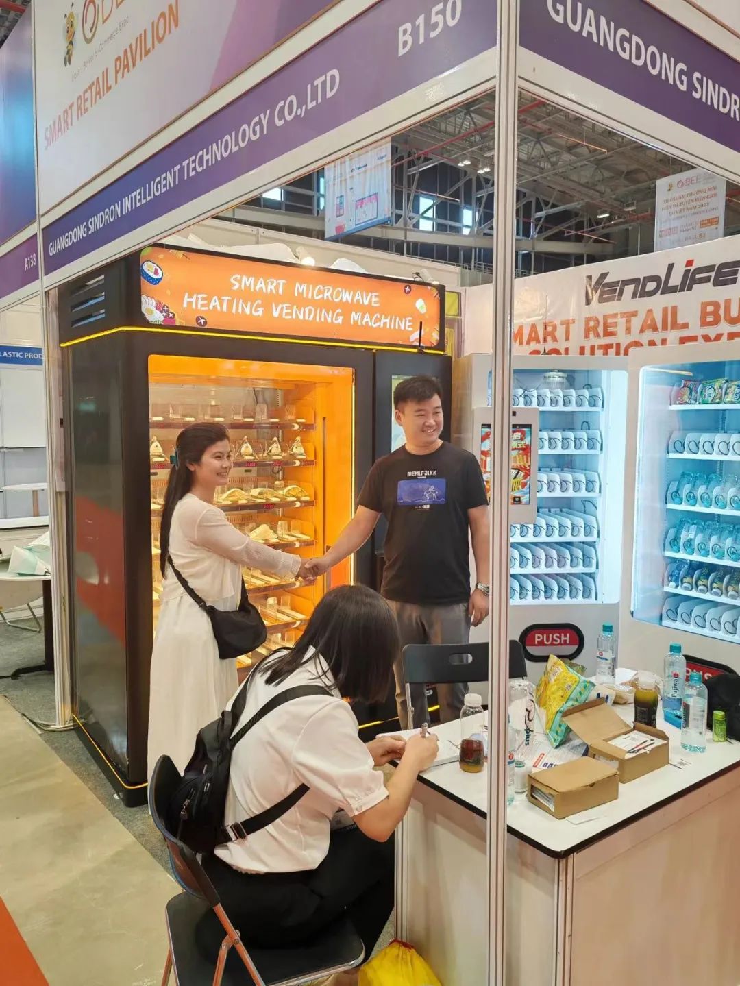 参展商刘总表示,此次参展为他们开启了新的市场,会继续参与选品展的后续活动,积极拓宽东南亚市场。刘总在本次展会中与一位采购商达成合作意向,预计成交量为1000台自动售货机。