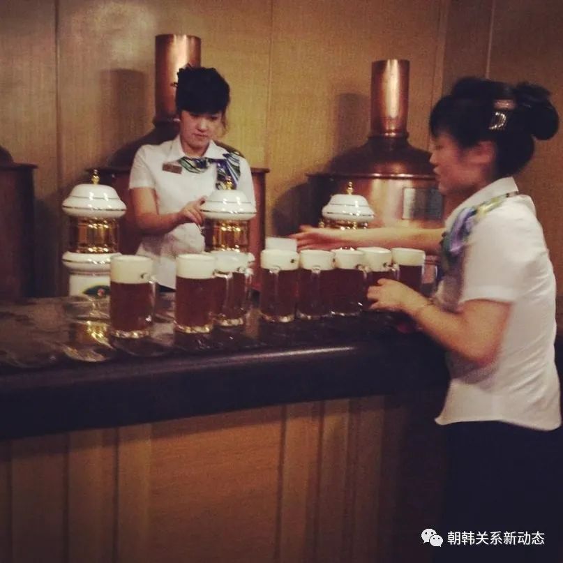 打自酿啤酒的服务员