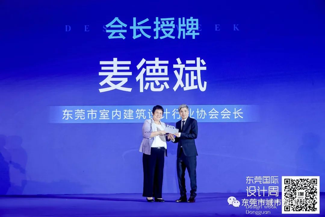 室内建筑设计行业协会会长麦德斌(右)授牌