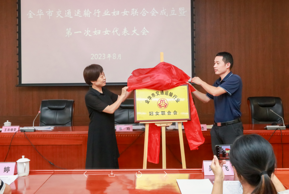 市妇联、市交通运输局领导为金华市交通运输行业妇联授牌。