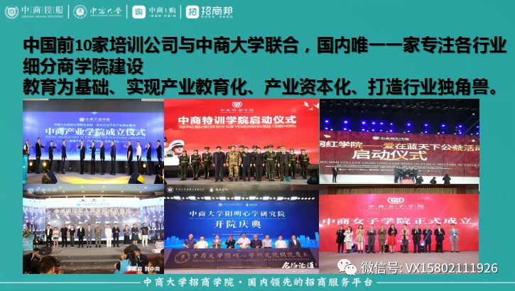 3、实战:整合培训同行,成立中商大学产业学院,中商大学网红学院、中商大学阳明心学研究院、中商大学女子学院、中商大学特训学院