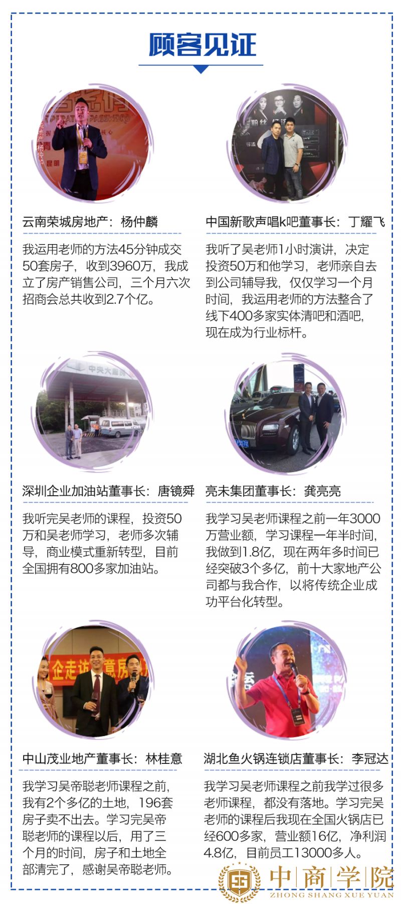 1、资历:自己经营企业,创立中商控股集团,投资近40家企业,有结果才有发言权。