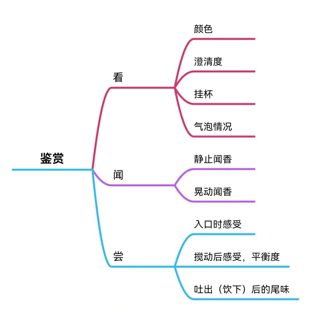 对于起泡酒而言除了上述的要点外,还应观察杯中不断冒出的“气泡”,气泡的大小、连续性、细腻度,都是起泡酒品质的指标。