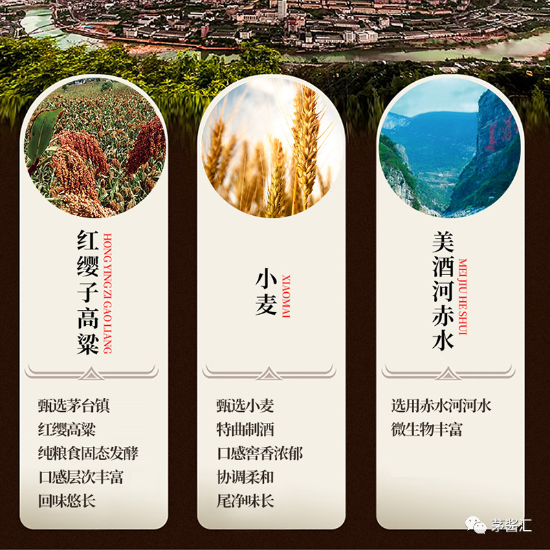 以茅台镇的酱香型白酒来说。茅台镇是在贵州仁怀,这里的酒文化源远流长,被誉为“中国第一酒镇”。茅台镇的美酒闻名于世,主要就是因为这里的小气候独特及地质结构:全年的平均气温在16.3℃,一年的日照时间为1400小时,无霜期是311天,全年的降雨量在800—1000毫米之间,平均海拔高度为880米,地处大娄山脉河谷地带,蕴涵丰富的微量元素和微生物群,造就神奇的美酒之域.