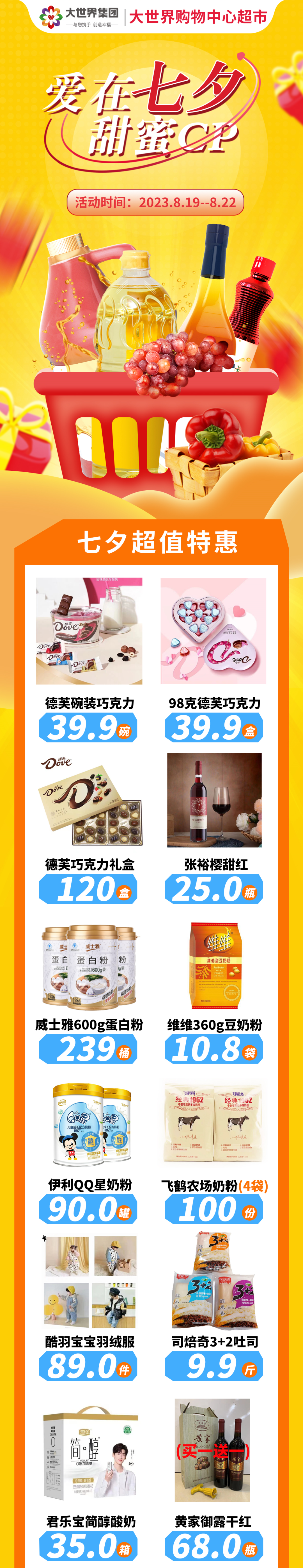 七夕特惠!德芙碗装巧克力39.9、红酒25!定州大世界购物中心超市更多低价等你!