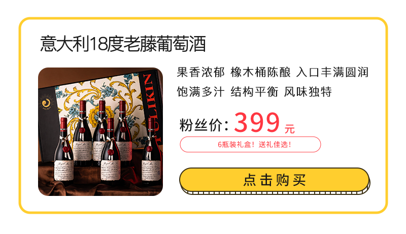 今天给大家带来了一款最近疯狂囤货爱不释口的意大利18°老藤葡萄酒!每一口都醇香得恰到好处、意犹未尽!