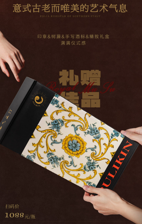 这款葡萄酒正是意大利进口红酒,每一颗葡萄均取自80年以上的老藤。