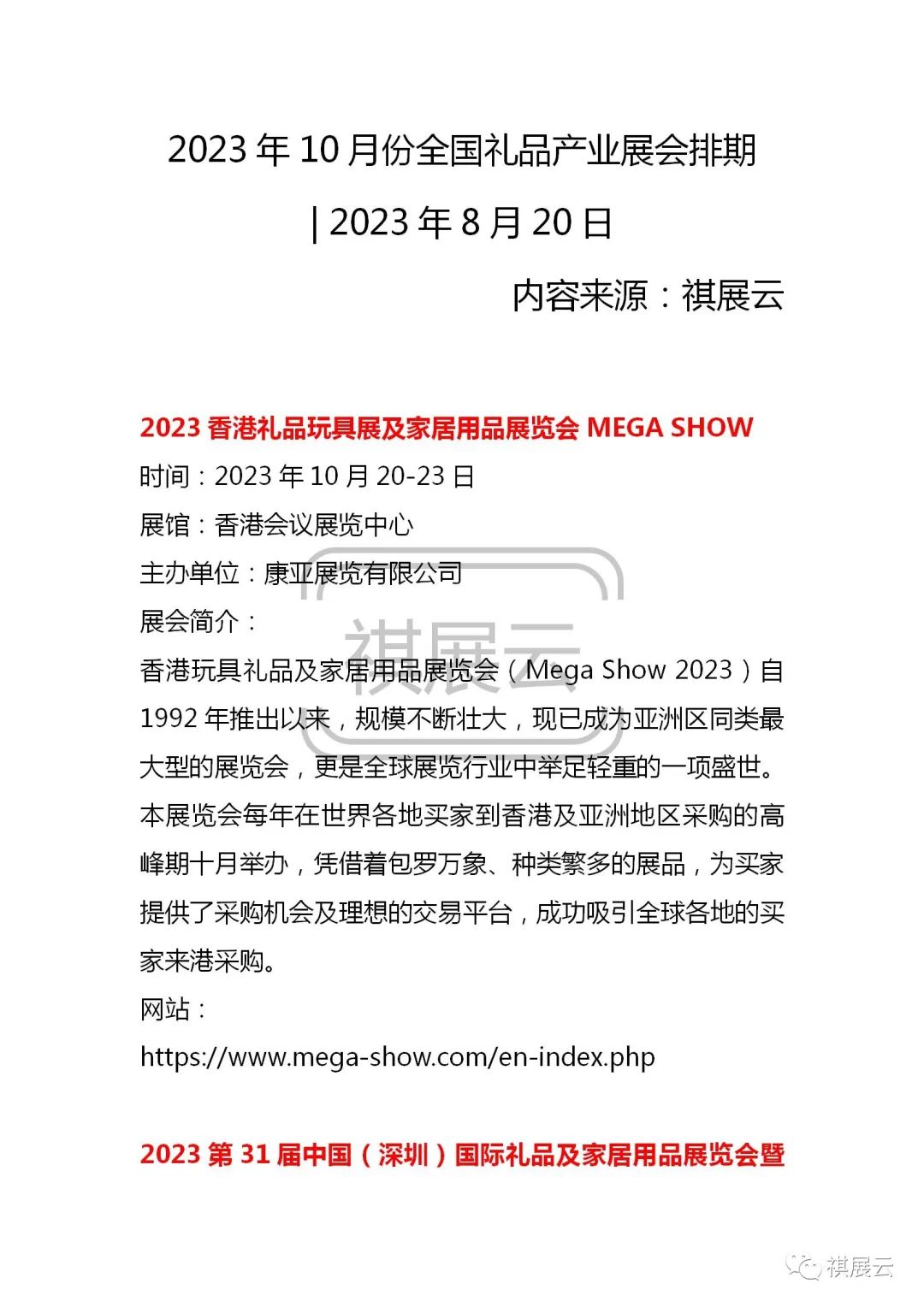 欢迎大家关注公众号“祺展云”,每日获取更多会展行业资讯。资料整理不易,如需转载,请联系工作人员转载注明出处。