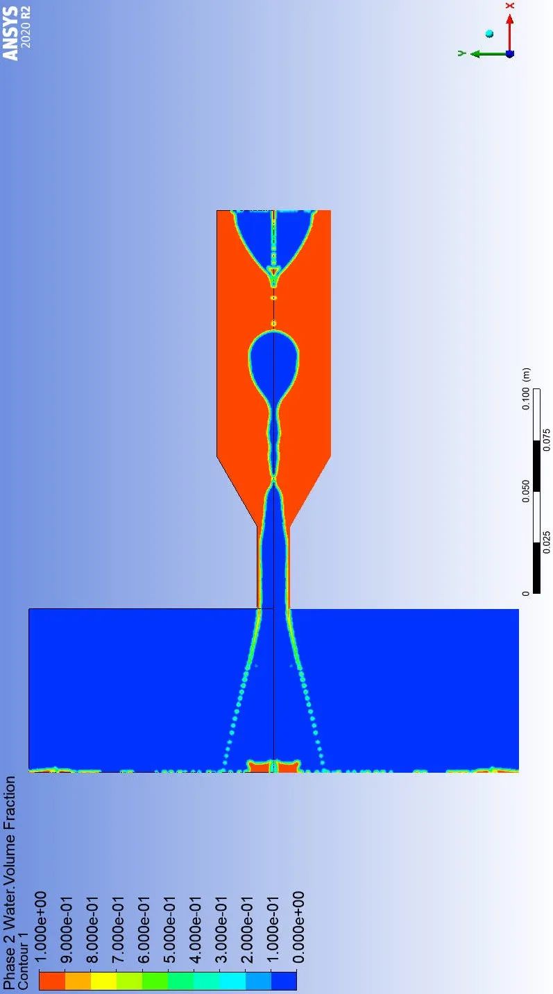从上述结果来看,炫与不炫,高下立判,炫能大大加快这种将小麦芽和大麦芽为主要原料并加啤酒花经过液态糊化和糖化再经过液态发酵酿制而成的酒精饮料以一种极其丝滑顺畅的流动状态进入碳基生物体内的方式。老老实实喝一瓶时:流体自由下流,流体和空气接触界面处于孤勇者状态,流体流出空气补充形成段塞,一来一往不利于流体顺畅流出。急头白脸炫一瓶时:流体自由下流,不同的是由于旋转瓶体,流体会由于离心作用紧贴瓶体,此时瓶口正中心为空气进入开辟出来一条血路,于是流体顺利流出,空气顺利进入,形成完美世界。果然,炫不是瞎炫,可见劳动人民从生产实践中总能筛选出能够用来指导生产的经验。以上由于啤酒瓶模型尺寸全靠猜测,并未测量,且由于硬件算力有限,利用对称旋转模型,结果必然和实际差距较大,不重要,不重要~