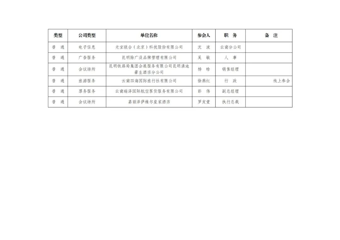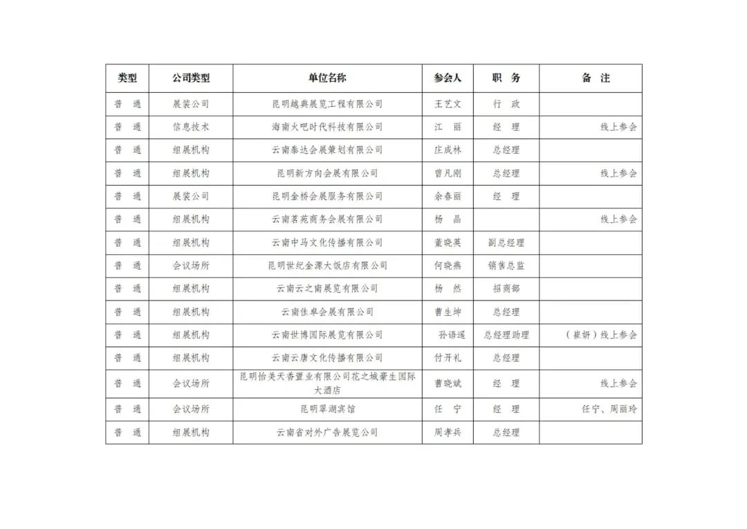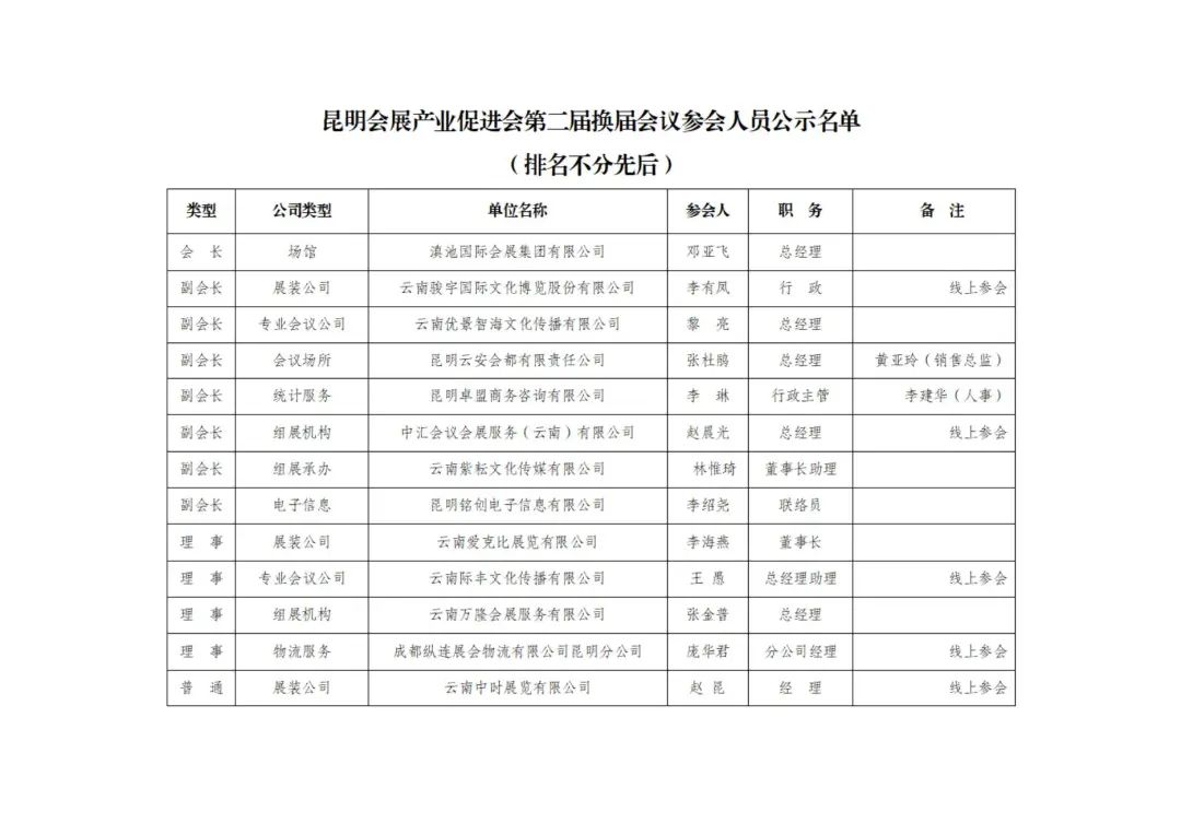 昆明会展产业促进会第二届换届会议参会人员公示名单(排名不分先后)
