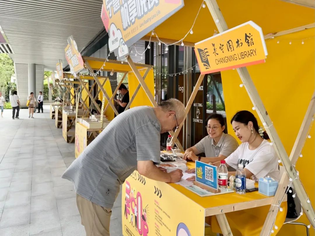 长宁区图书馆也在现场设立了文化服务点,为读者免费、免押金办理读者证。同时,读者还可以在服务点通过“扫描领文创”等活动了解“新页书房”智慧图书馆以及近期长宁区图书馆的活动与服务动态。“我刚刚搬家到长宁,之前一直想办长宁图书馆的读者证。今天来逛逛书展市集,没想到在这里就能办证,不仅可以到图书馆领取,还能给我包邮寄到家,太方便了!”市民秦先生说。