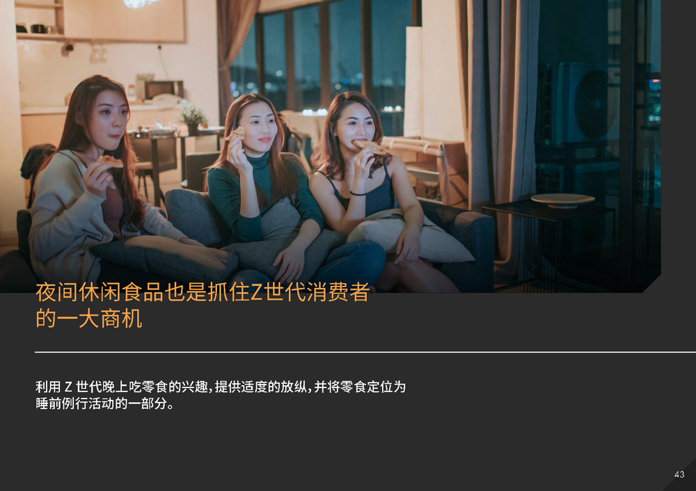 Z世代一致认为零食是夜生活的必备品,夜间休闲食品也成为抓住这一消费群体的商机。咸味零食品牌可以通过跨界合作或从全球美食中汲取灵感,探索有趣的口味,因为新奇口味是消费者购买零食的一大动力。