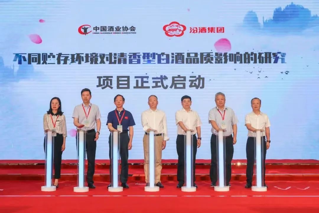 启动仪式上,宋书玉、袁清茂等领导及学者共同按下启动按钮,大家共同见证了“不同贮存环境对清香型白酒品质影响的研究”项目的正式启动。