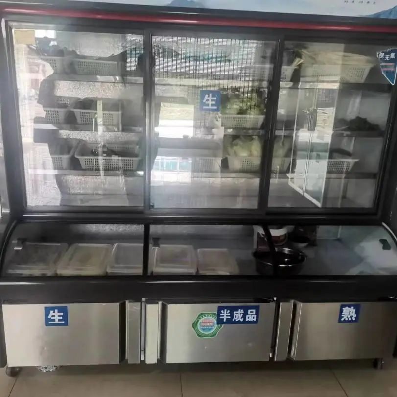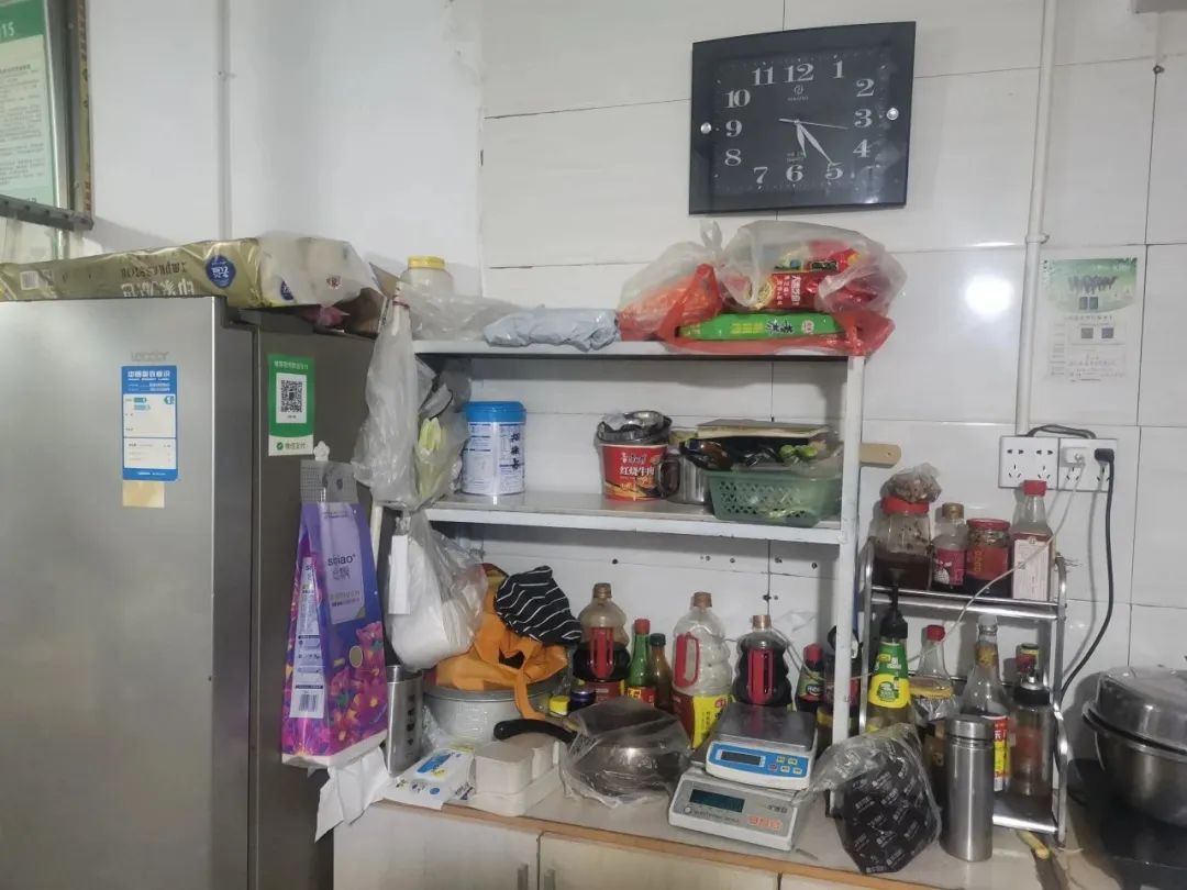 上榜理由:操作间物品摆放杂乱;后厨加工操作区卫生状况差;冰柜冰霜过厚,使用有色塑料袋;风幕机长度不够;柜子上面摆放杂物;食用物品直接落地摆放;从业人员未穿戴卫生衣帽口罩;台账记录未及时填写;防蝇帘长度不够。