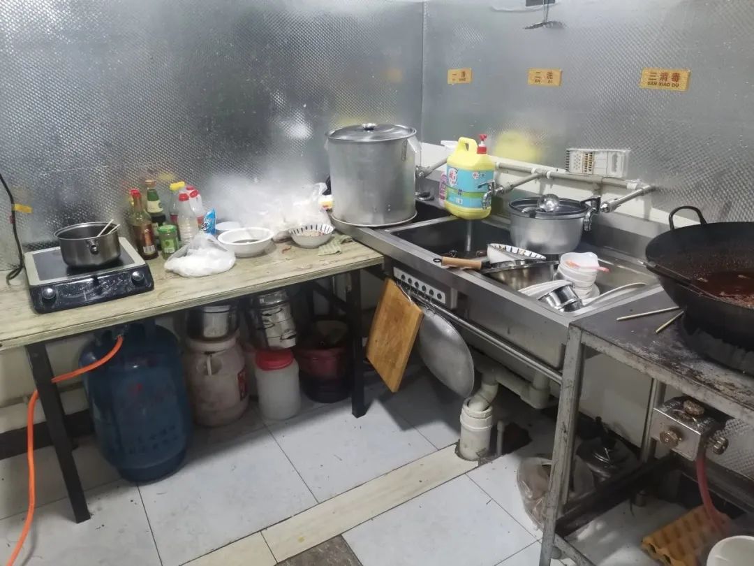 上榜理由:操作间物品摆放杂乱;后厨加工操作区卫生状况差;餐饮具清洗消毒不及时;箅子空隙过大;调料区未加盖防尘罩;就餐区物品堆放杂乱;消毒柜上面摆放杂物;食用物品直接落地摆放;保鲜柜内未生熟分开,肉类食品未加盖保鲜膜;从业人员未穿戴卫生衣帽口罩。