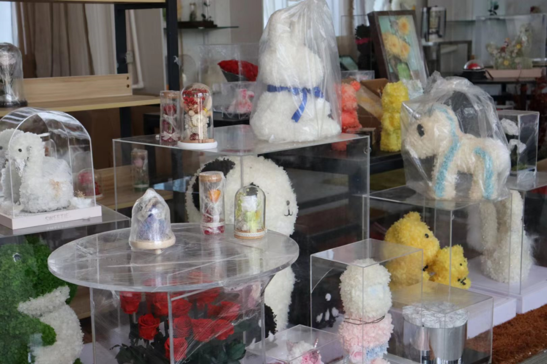 盛世繁花花卉有限责任公司将新鲜花卉通过永生花技术加工成适用于多种场合的装饰品,大大提高了花卉的附加值。
