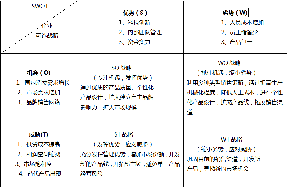 膨化食品企业应结合自身企业情况,根据SWOT分析结果,确定更为合理的发展战略。