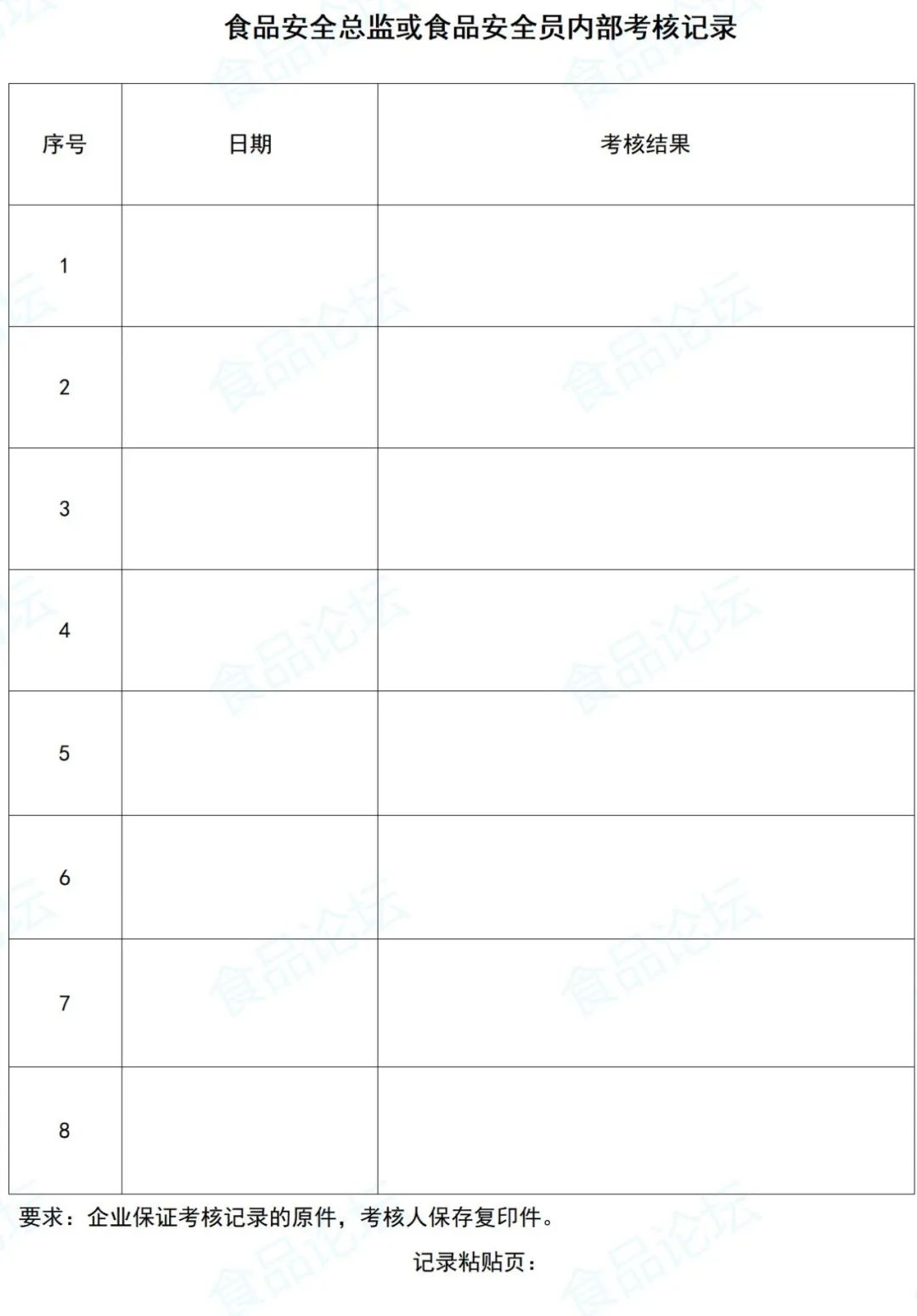 2.5 报表-食品安全总监或食品安全员内部考核记录
