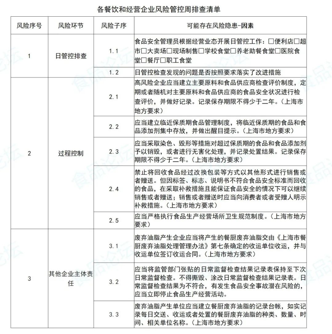 4.3.1正常营业期间,食品安全员每周至少根据公司《各餐饮和经营企业风险管控周排查清单》组织1次风险隐患排查,全面排查加工或销售过程各环节可能存在的食品安全风险隐患