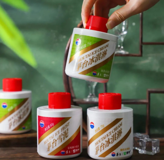 茅台酸奶味冰淇淋,看起来绵绵软软的雪糕,吃一口茅台的酱香味、酸奶的酸甜牛乳感,精选55%以上优质生牛乳,100%全发酵技术,添加2%的53%vol贵州茅台酒,集酸奶的营养与健康,冰淇淋的细腻与美味,茅台酒的酱香与醇厚于一体,口感细腻,风味饱满,自然出纯正。