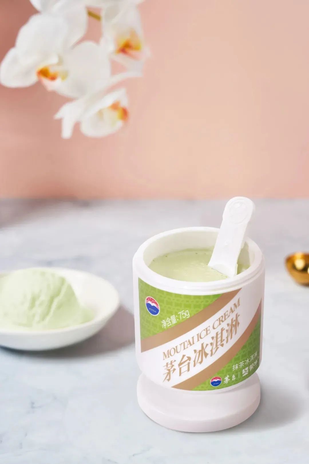 茅台抹茶味冰淇淋,抹茶选自高海拔、低纬度、多云雾的,高原茶核心产区“贵州抹茶“,添加2%的53%vol贵州茅台酒,顺滑回甘,口味清雅幽香,鲜甜不腻、回味悠长,一抹绿色带着浓浓中国风,满足多重味蕾的享受。