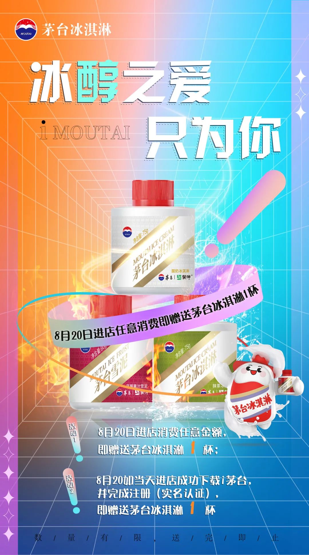 苏食酒业在这个值得互诉爱意的日子里,为所有客户准备了一份甜蜜礼物,当天进店任意消费或者是下载i茅台完成实名注册即赠送茅台冰淇淋1杯。